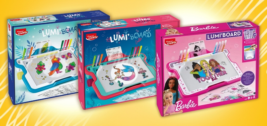 Az új kiegészítők minden korábbi Lumi Board alapkészlettel kompatibilisek – legyen az a klasszikus, a hableányos vagy a Barbie verzió. Akárcsak a többi MAPED CREATIV készlet, a Lumi Board nemcsak szórakoztató, hanem nagyszerű fejlesztőjáték is, amely támogatja a finommotorika és a koncentráció fejlődését. Tökéletes ajándékötlet szülinapra vagy ünnepekre - tudj meg többet a készletekről a legújabb MAPED CREATIV karácsonyi katalógusunkból!