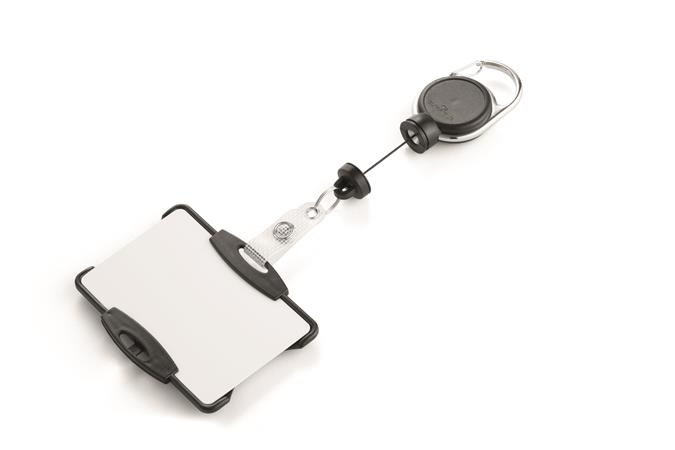 Biztonságikártya-tartó kihúzható mágneses karabínerrel.