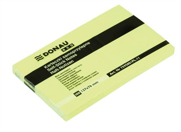 Öntapadó jegyzettömb, 127x76mm, 100 lap, DONAU "ECO", sárga