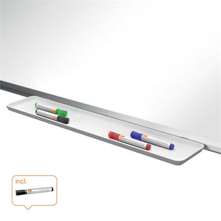 - nagy méretű tolltartó tálcával a fehértábla markerek és táblatörlők kényelmes tárolásához